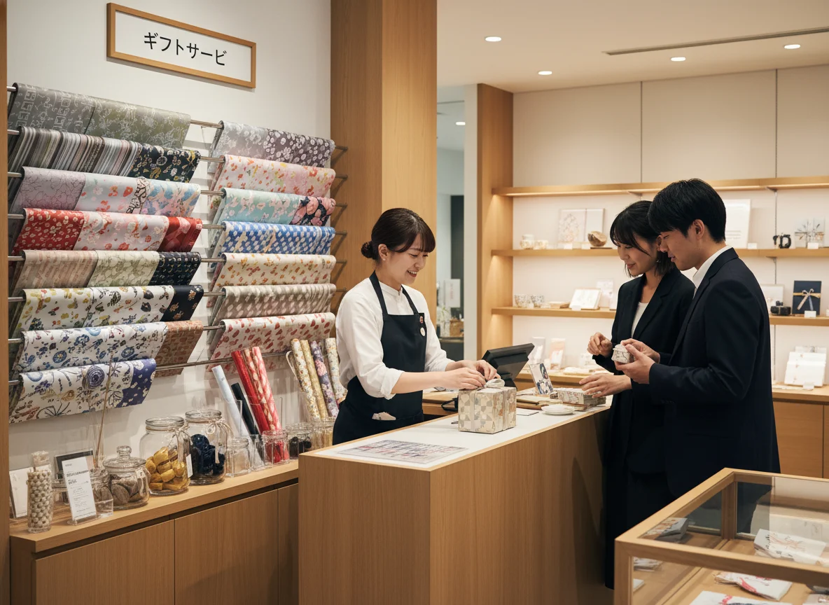 在包裝時,店員會問「包装紙のデザインをお選びください」,這種提供選擇的方式,不只是「讓你選包裝紙」,其實也是讓你可以慢慢看、慢慢選,找到最喜歡的設計。