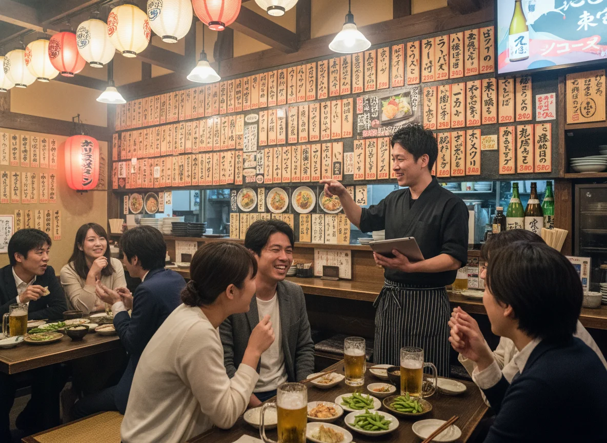 山田花子さんは、日本の居酒屋文化に興味がある外国人留学生です。今日は日本の居酒屋を訪れ、その文化を学びました。