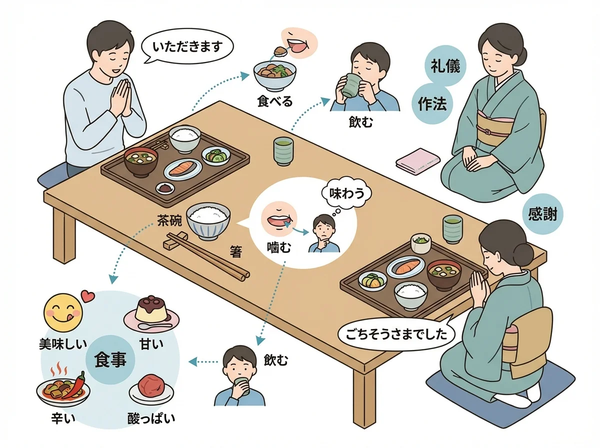 在日本,跟「吃東西」有關的日文,不只是告訴你吃了什麼,很多時候也偷偷帶著感謝、禮貌和氣氛在裡面。