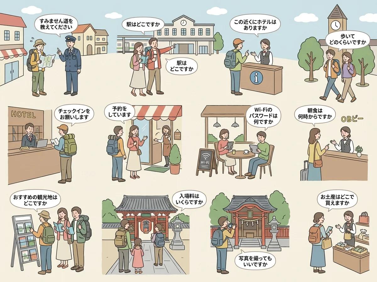 今天我們將學習日語中旅遊與觀光相關的表達方式: